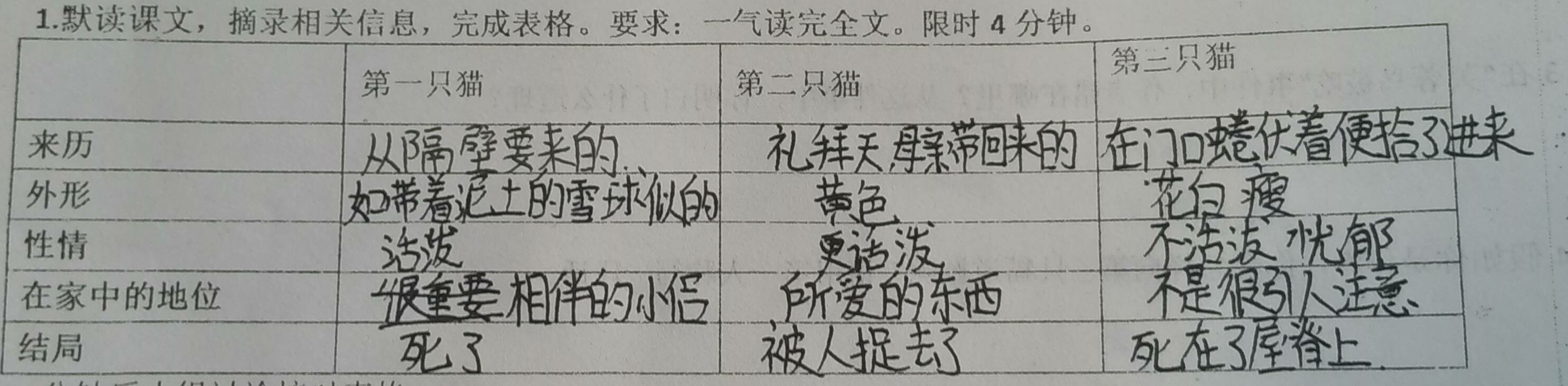 当前位置:合作研学 -> 默读课文,填写表格 -> 七年级14班