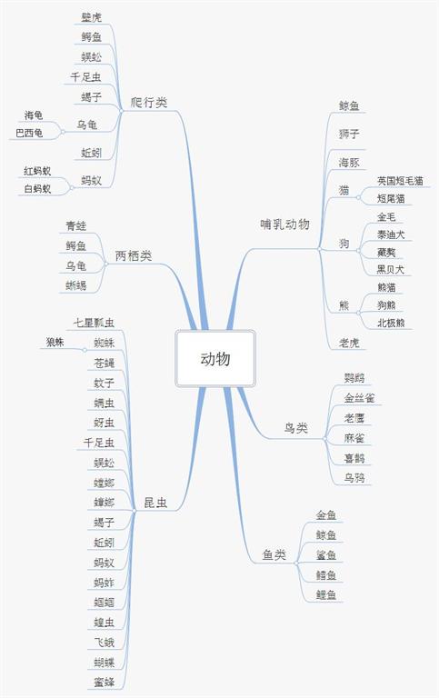 再往下一级做,比如每一种动物的特征,食物,生存环境等等。